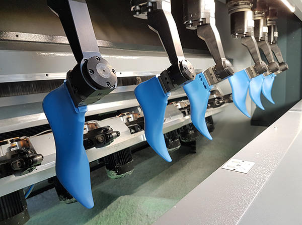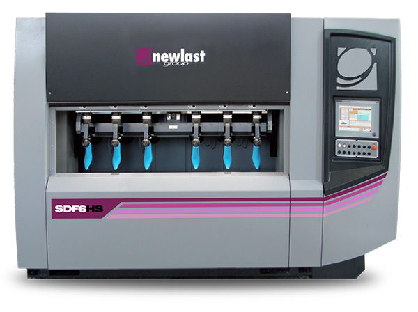 İtalya nın SDF6 HS, Neulst tarafından tasarlanan ve yüksek üretim ihtiyaçlarını karşılamak üzere tasarlanmış üçüncü nesil bir sonlandırma makinesidir. Ayağın ve topuktan ziyade kalıbın üstündeki yenilikçi kırlangıç kuyruğu desteği, daha fazla manuel işlem yapmadan üç çift kalıbı tamamlamasını sağlar. Bu makinenin özellikleri, manuel müdahale olmadan ve ayakkabı kalıplarında zımpara kullanılmadan yüksek hızlı, otomatiktir. Bu sınırlama sistemi tam işlemeye izin verir ve kelepçeden kaynaklanan tüm model deformasyon risklerini ortadan kaldırır. 9 iç şaftı sayesinde, sadece bir çalışma döngüsünde (yaklaşık 45 bp / s) üç çift kalıp üretir. Çalışma döngüsü sırasında bir sonraki boyutu veya farklı bir modeli de tanımlayabilirsiniz.